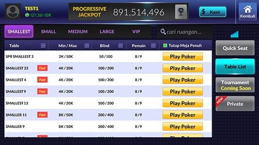 3. Setelah anda login, anda akan menuju tampilan lobby game. Disini anda bisa memilih jenis permainan dan juga bisa memilih tempat permainan.