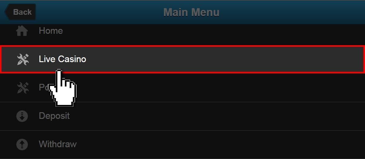 1. Login userID anda terlebih dahulu di situs resmi m.bola88.com, klik menu Casino di LIVE Casino.