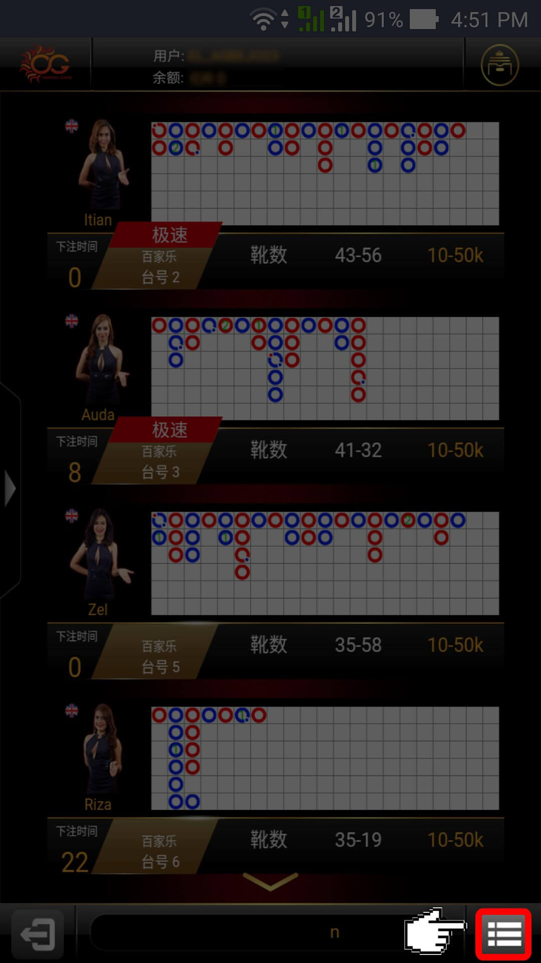 3. Setelah muncul tampilan lobby game, klik menu di pojok kanan bawah.